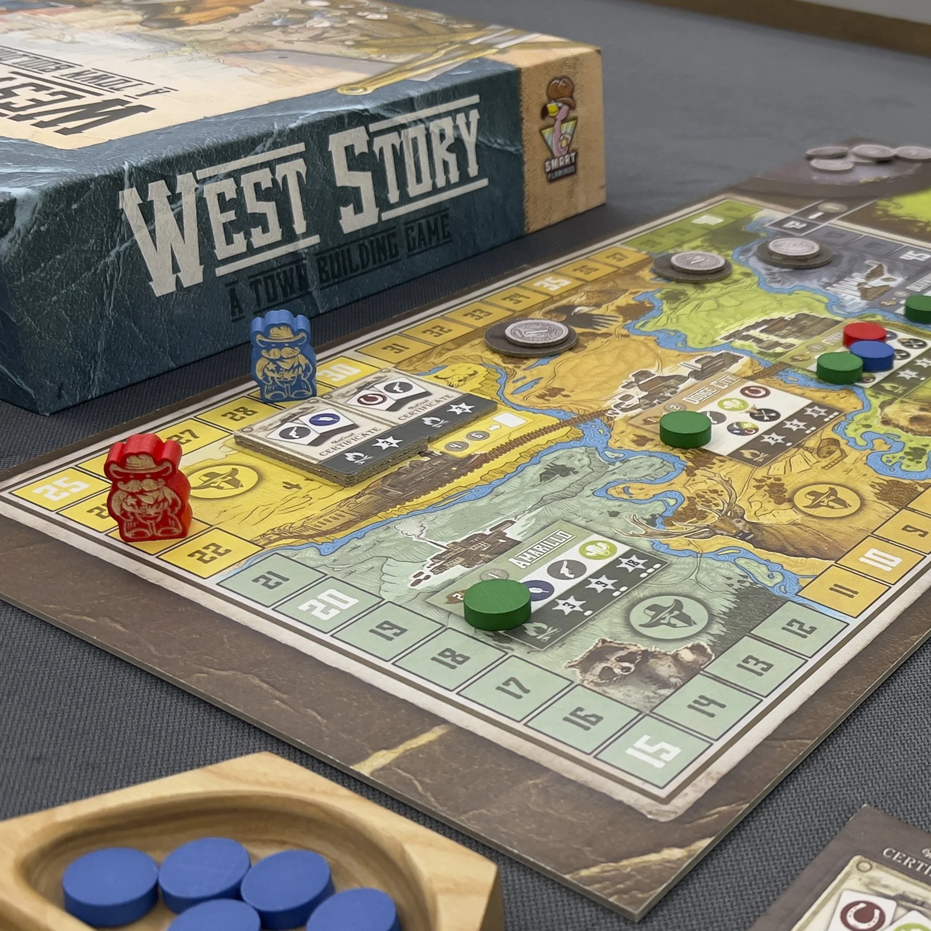 We have played it mostly at 2 players, but we have also enjoyed the game at 4 players, and both player counts offered great experiences. Playing this prototype for the first time (and subsequent plays) was a joy, as it met all our expectations. West Story is our kind of game and deserves a place in the collection.
