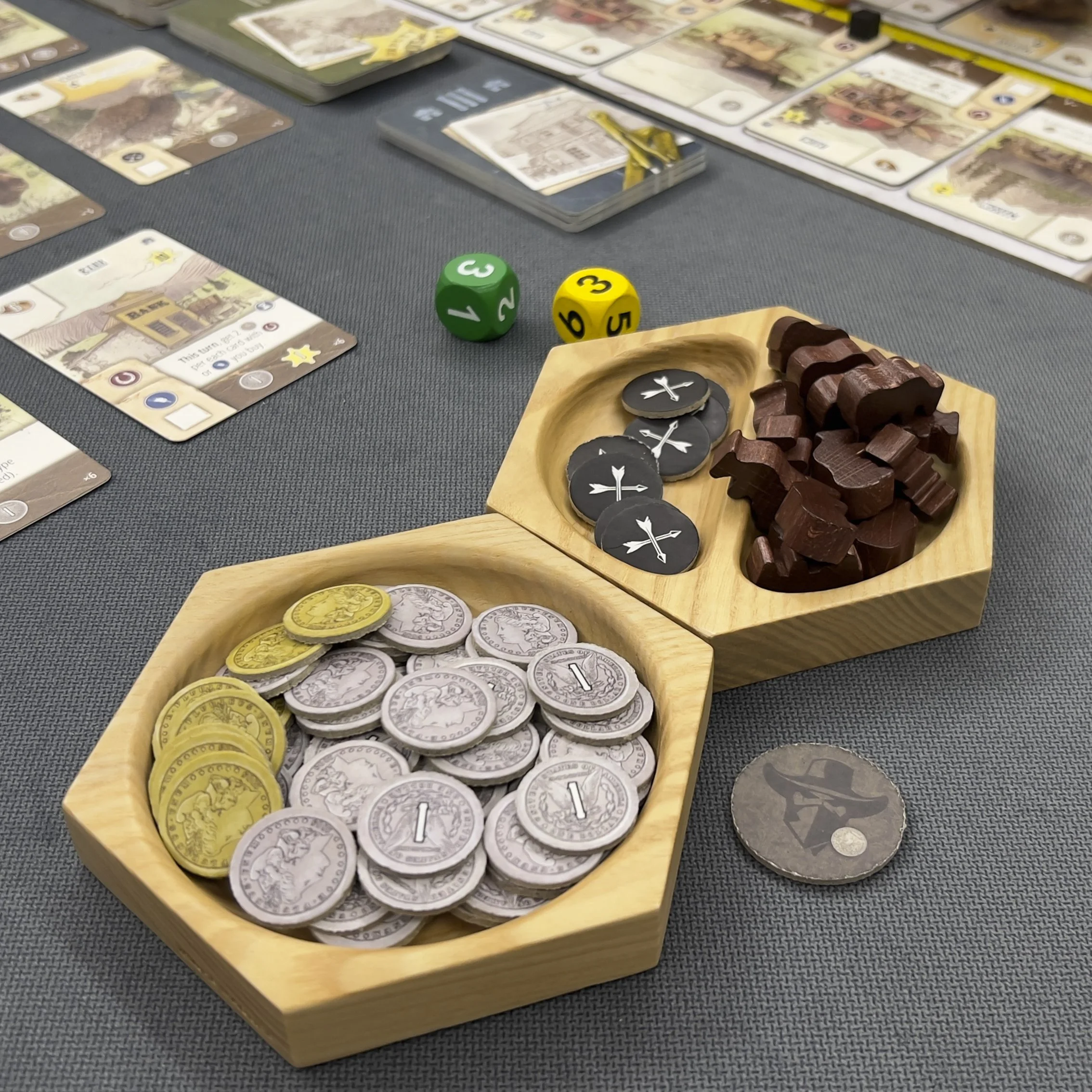 In West Story: A Town Building Game, you take on the role of a Wild West town builder, striving to create the most prosperous settlement on the frontier. You will purchase cards to enhance your player board, improving your available actions and also accumulating victory points. Get ready to establish your presence in the Wild West, where careful planning and a bit of luck will determine who becomes the most legendary town builder of all!